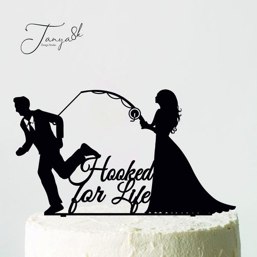 Bride Pulling Groom Wedding Cake Topper Hooked For Life Etsy